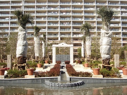 中庭にはリゾート地を彷彿させる「くつろぎの泉」があり、夜はライトアップされ幻想的な雰囲気が漂います。