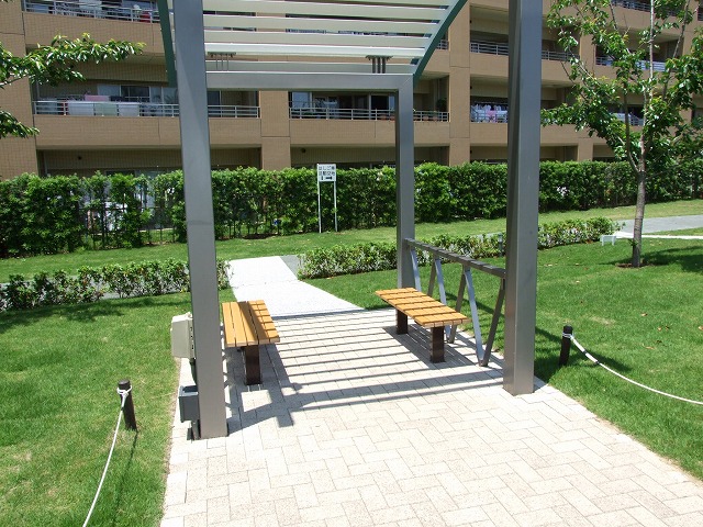 中庭には小休憩できるベンチもあります
