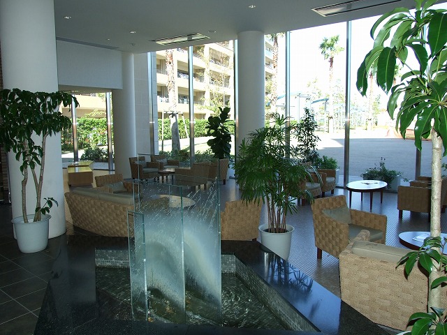ロビーは中庭が望めるようにガラスで演出