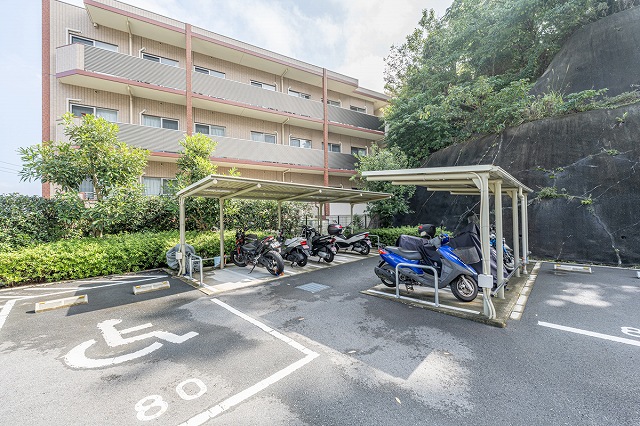 敷地内屋根付きのバイク置場。月額使用料2000円