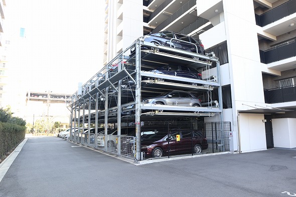 3) 居住者用のパーティールームや、1時間100円で利用できるカーシェアリングなど、
