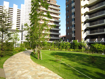 2) 森をテーマにしたランドスケープ、四季折々の緑が心を癒してくれる、総戸数777戸の大規模マンションです。エアリーハウス、ブライトハウス、コンフォートタワーのそれぞれ特徴のある3棟で構成されています。